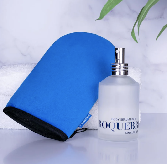 De ROQUEBRUN. tanning glove is het perfecte hulpmiddel om de face- en body serum gelijkmatig over de huid te verdelen. Het helpt je handen te beschermen tegen eventuele vlekken tijden het tannen. Dankzij het gebruik van de tanning glove wordt de ROQUEBRUN. face- en body serum beter verdeeld. Dit zorgt er ook voor dat het eindresultaat van het tannen gelijkmatiger zal worden en het resultaat langer zichtbaar blijft.